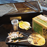 各棟に専用のバーベキュー場が付いています。屋根付きだから雨の日も大丈夫!また、バーベキューに必要なコンロや機材の貸出も行っております。